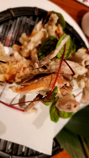 Very umani soup with a bit of Yuzu/lime peels. The seasonal mushroom is with a balance of textural crispy and chewiness.