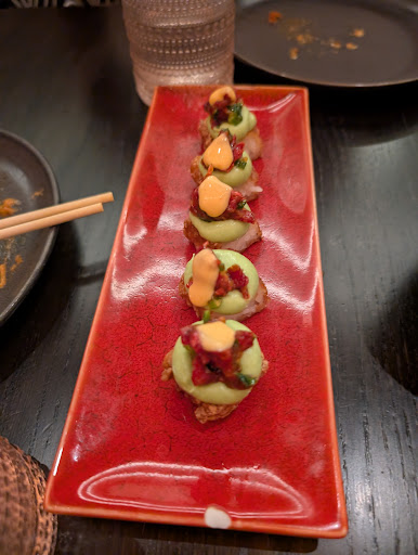 Really loved the concept and felt like the restaurant delivered on a unique experience with food combos that are fun to try. Overall felt the dishes we got were under seasoned (and wasn’t clear if it was intentional given soy sauce on the table) so something to be mindful of. Loved that on Wednesday they had have bottles of wine the orange wine we a got was amazing. I’d skip the ahi watermelon