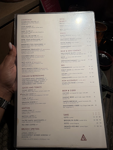 Was visiting NY and ran across this place on a Google search and it was a 2 min walk from where we were. We made it during happy hour so we order the Sake to Me which was a refreshing drink and 'Tinis. We ordered the spicy tuna roll from Happy hour menu and that was really good. We tried the firecracker wings as well, they were ok but (not a fan) we sent them back in exchange for the Korean chick'n bao which we thought was ok as well. The bang bang broccoli was pretty good as well. Our main dish was the dan dan noodles, which was a good dish as well. Overall, I spent $120+ here. Great date night spot but I probably would not make this my first spot. The food was good and the establishment is really nice but I am okay with the one experience.