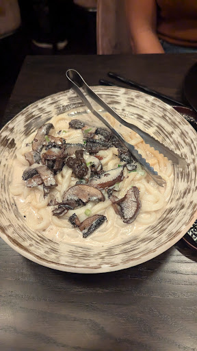 Recommending the Ahi Tuna Roll. You can’t go wrong with that. The Crispy Mushroom Bao. And the Mushroom Truffle Udon!